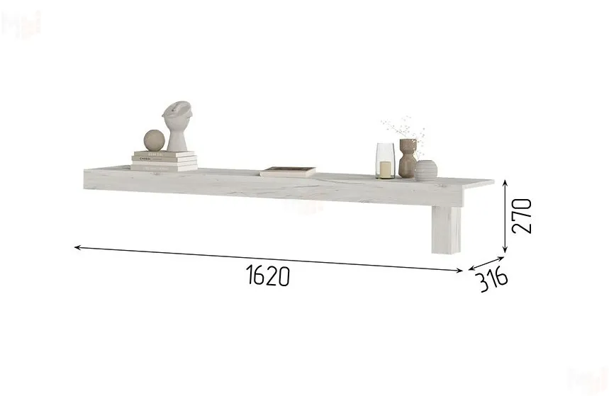 ширина 1620 мм, глубина 316 мм, высота 270 мм
