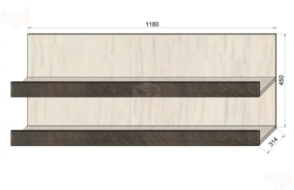 Полка навесная Фанки Тайм-12 состоит из двух горизонтальных секций. Можно комбинировать с модулями серии Фанки Тайм и серии Фанки Кидз.