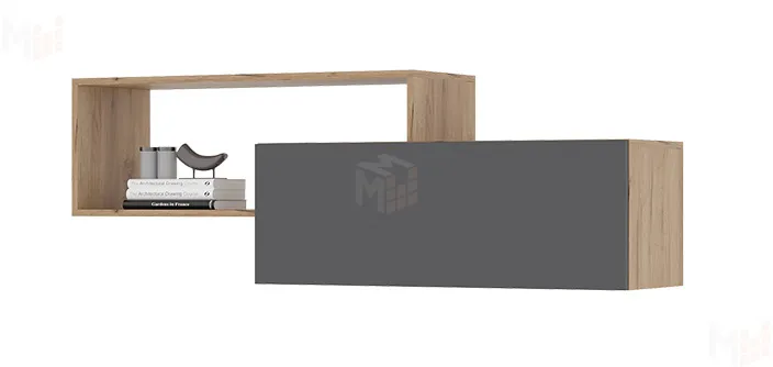 Полка, состоящая из двух элементов: открытой и закрытой системой хранения поможет обустроить любую гостиную или уголок школьника в детской.