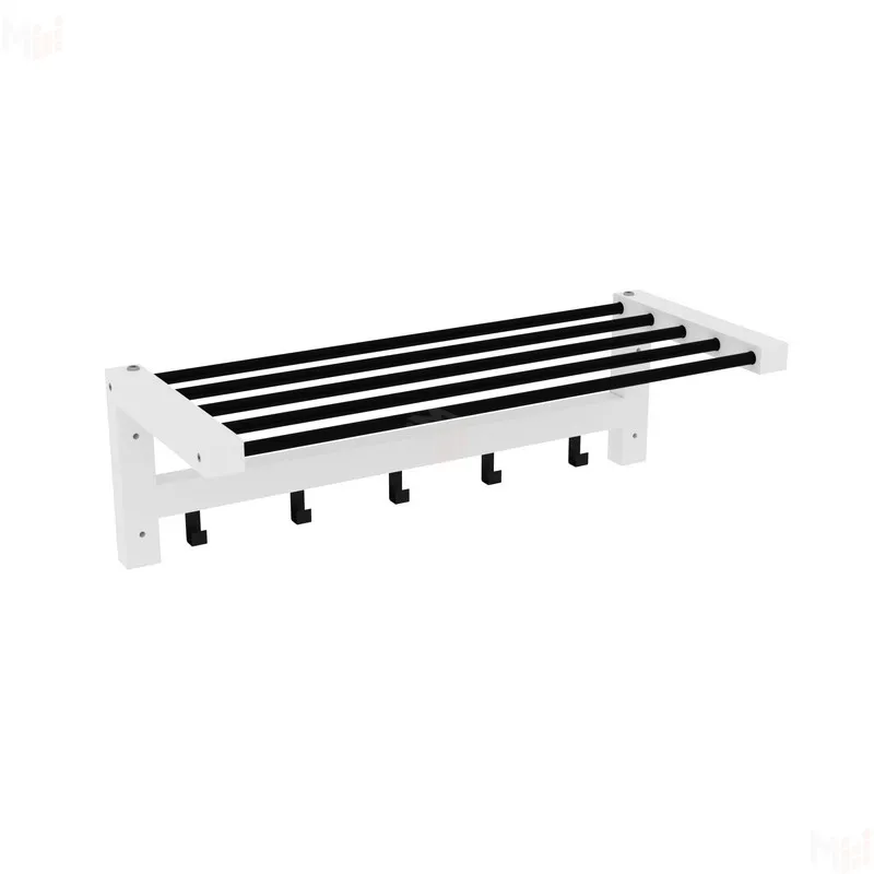 Полка навесная 79 Кантри, цвет Белый с полкой из планок и пятью крючками для одежды. Благодаря конструкции, легко и удобно хранить верхнюю одежду и головные уборы в зоне прихожей. Изготовлена из массива хвойных пород. Мебель для жилых помещений. Гарантийный срок 24 месяца.