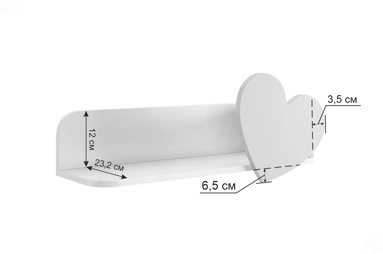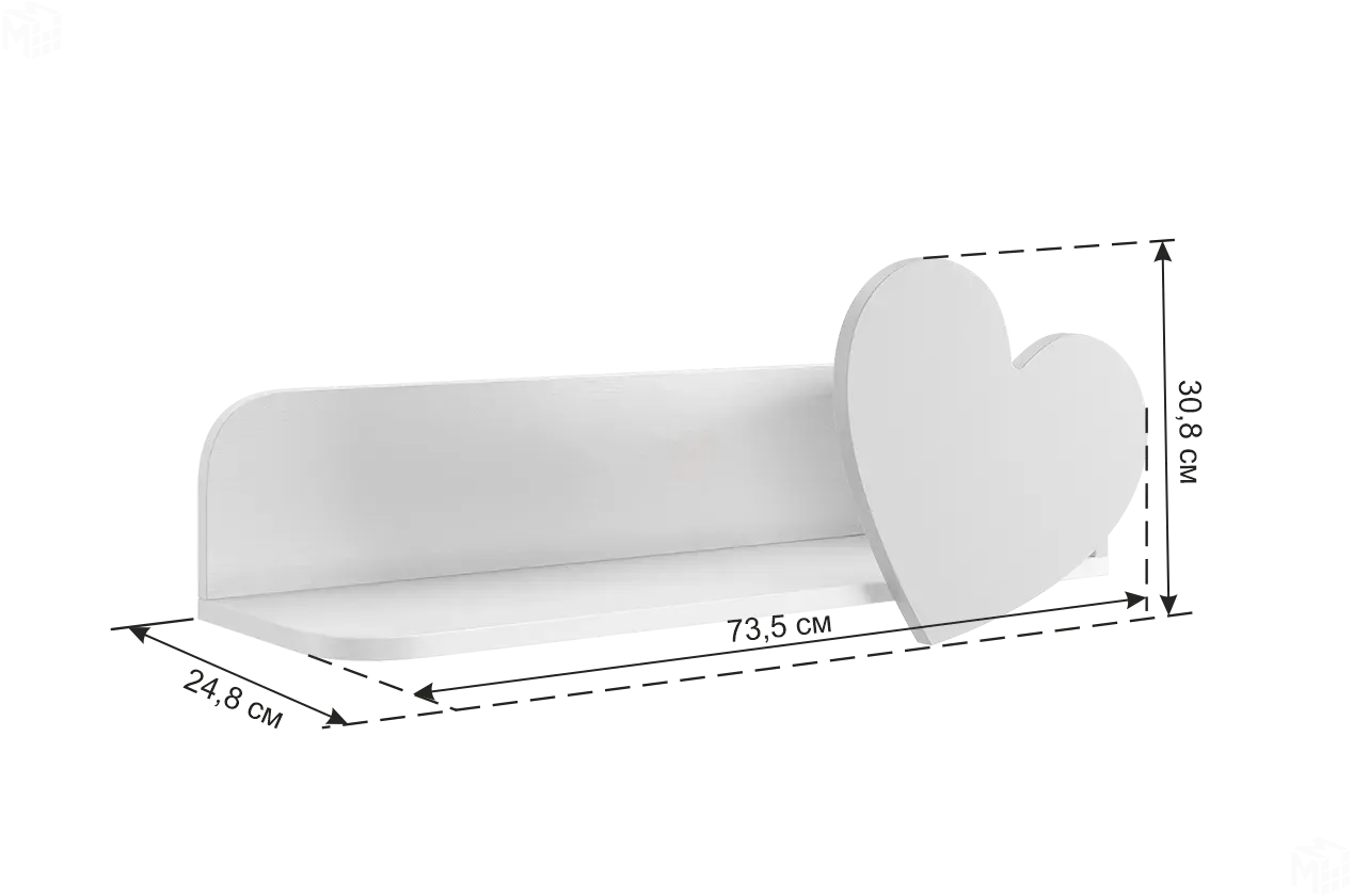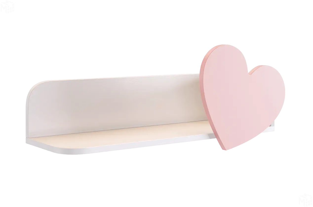 - Материалы: ЛДСП в цвете белого дерева, декоративный элемент из МДФ в форме сердечка, покрытый розовой матовой эмалью