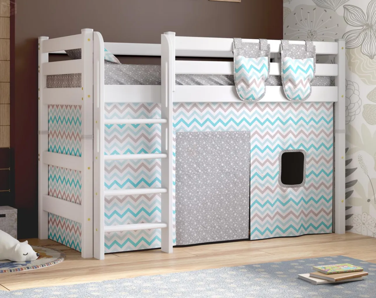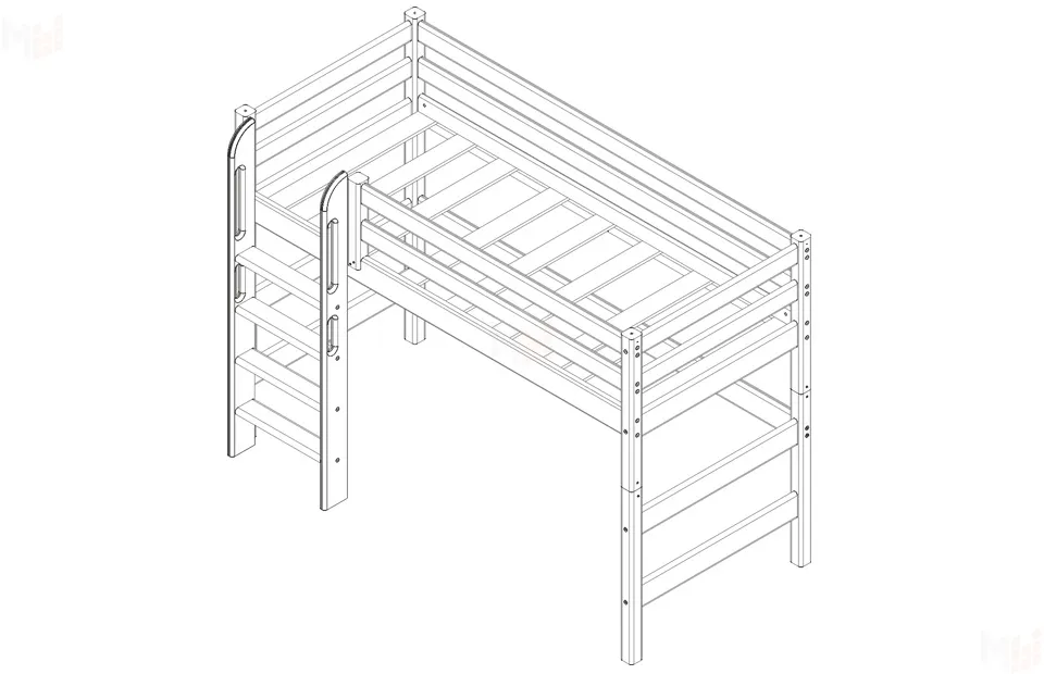 Вариант 5 полувысокая кровать «Соня» с прямой лестницей — один из примеров идеального сочетания практичности, оригинальности и долговечности. Цветовое исполнение подходит сразу для нескольких стилей, а габариты — для комнат разной площади.