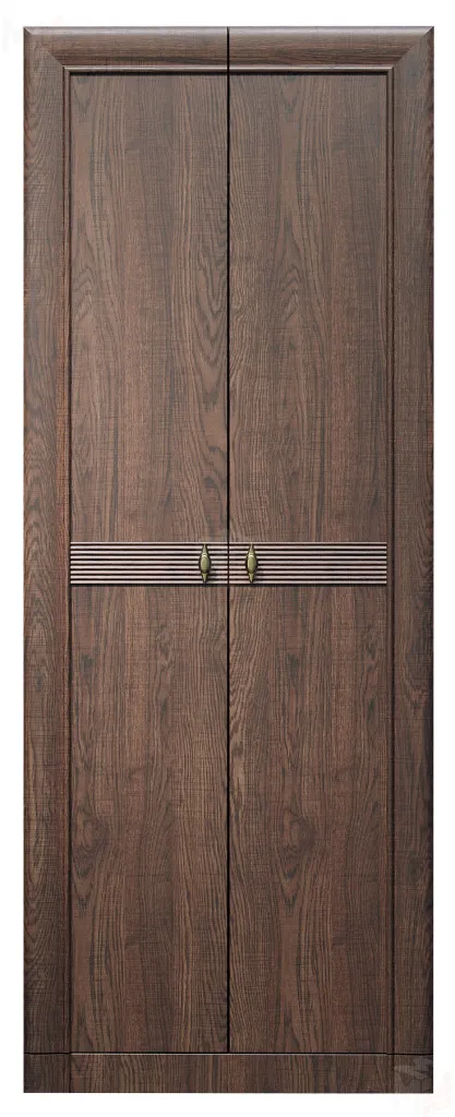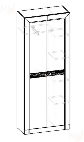 За распашными дверьми справа четыре полки, слева выдвижная штанга для одежды. -