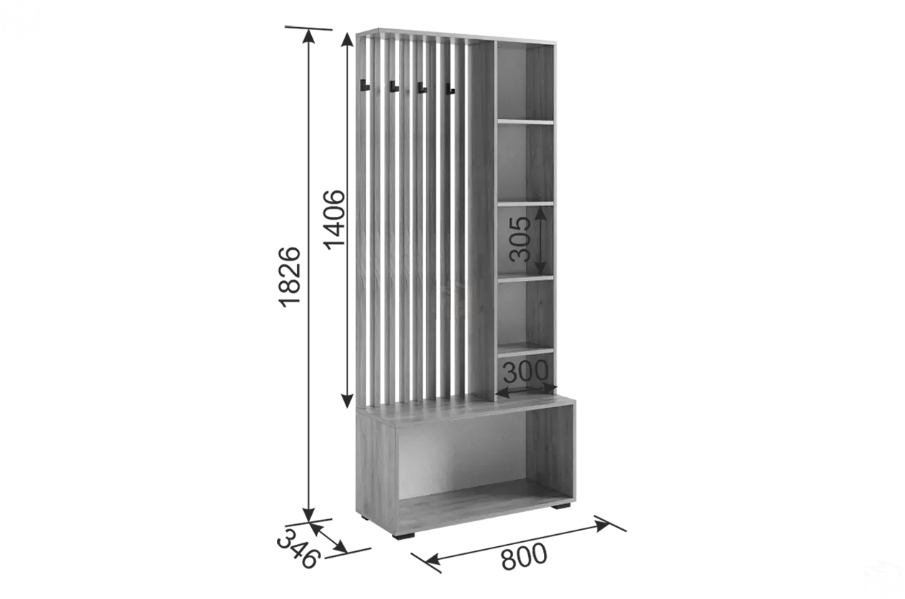 Ширина 800 мм х Глубина 350 мм х Высота 1826 мм