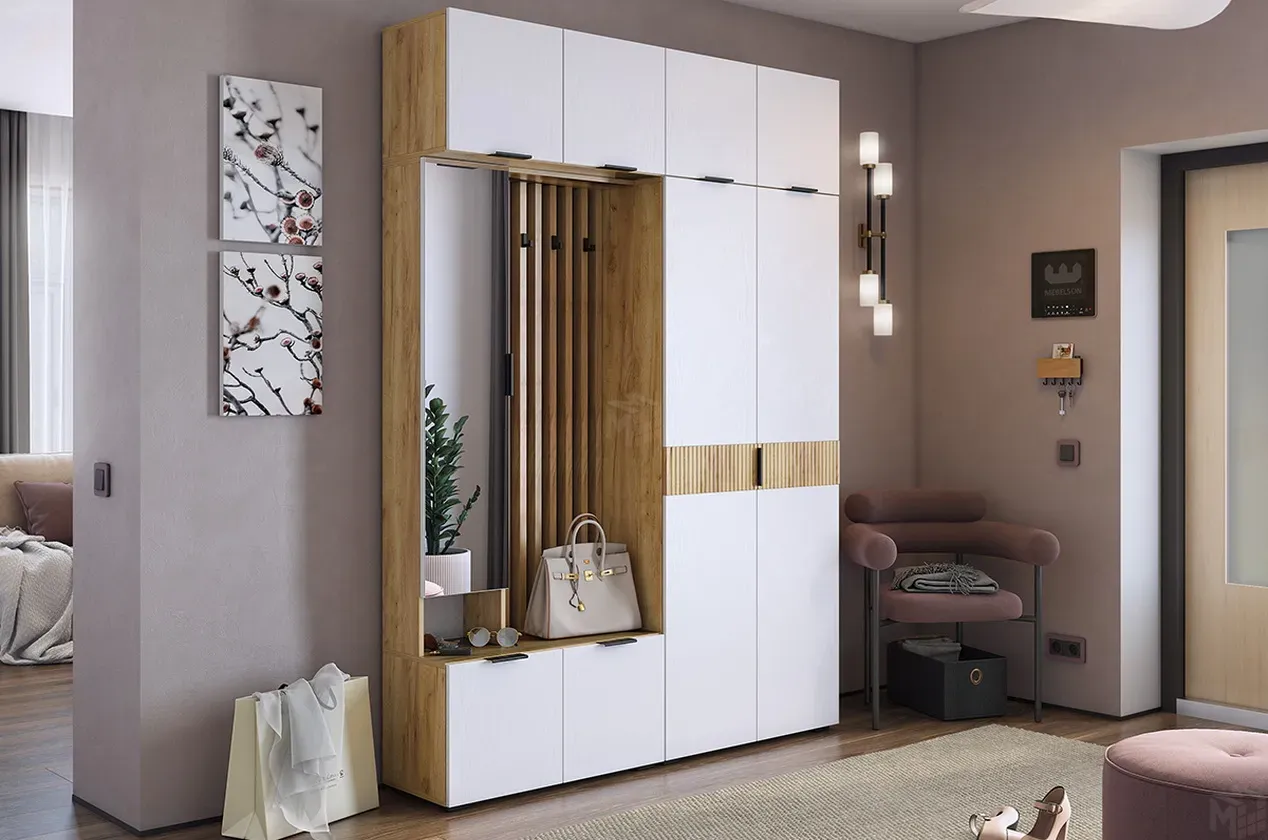 Прихожая Бери К4 дуб крафт золотой/белое дерево