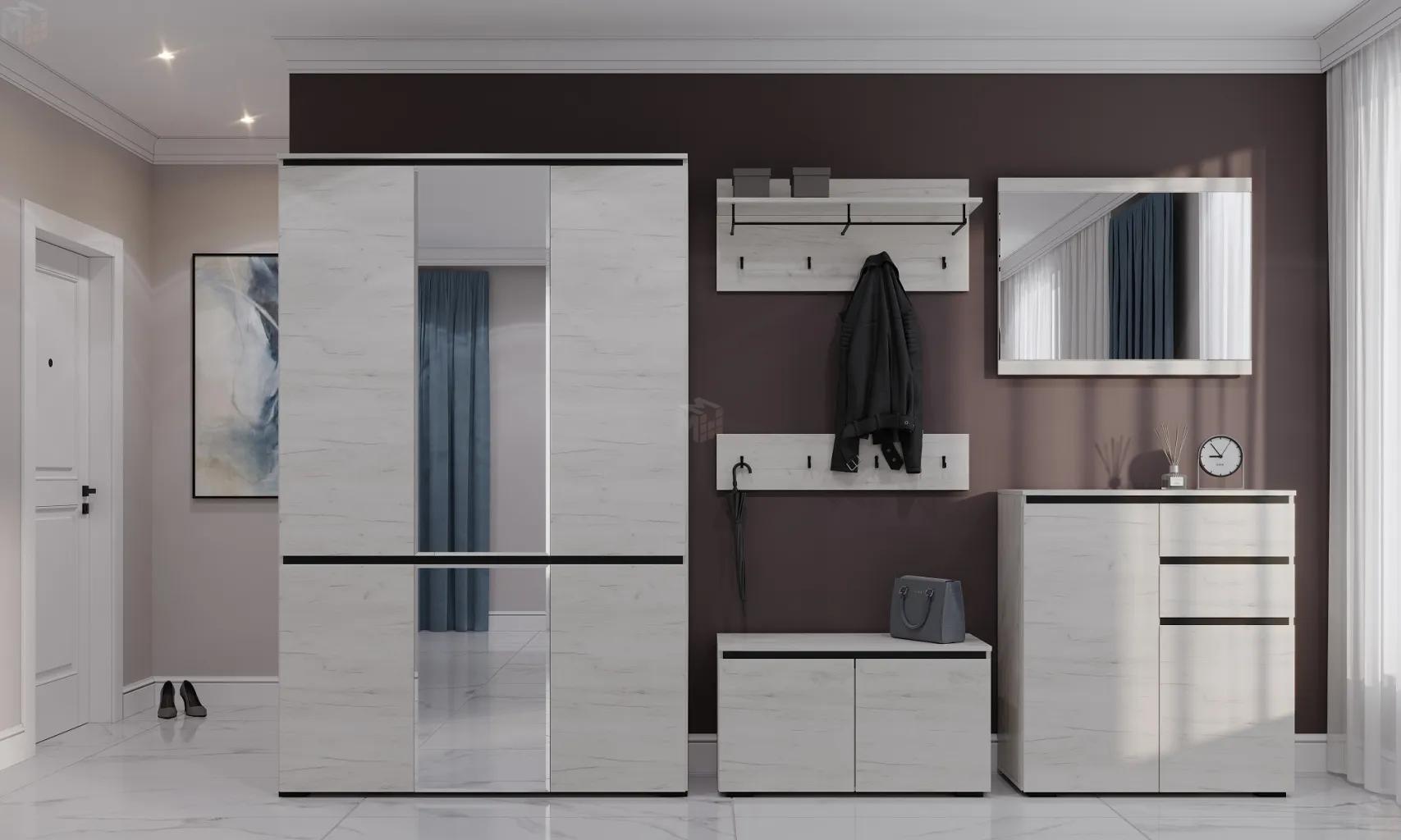Прихожая ГРЕТТА Дуб Крафт белый - Антрацит №3