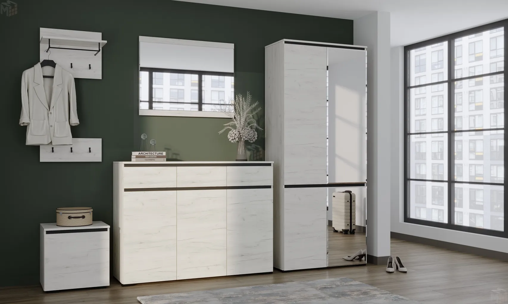 Прихожая ГРЕТТА Дуб Крафт белый - Антрацит №7