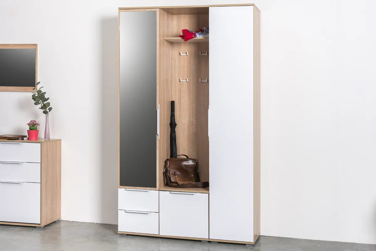 Корпус выполнен из ЛДСП Дуб сонома, фасады ЛДСП Белый премиум.