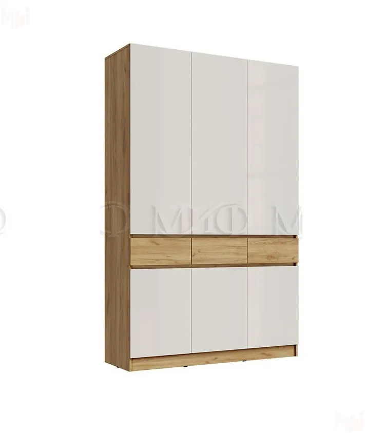 шкаф 3-х ств Роджина. (ширина 1500 мм, глубина 520 мм, высота 2400 мм) В шкафу предусмотрено три удобных выдвижных ящика на шариковых направляющих, а также полки небольшого размера и большая верхняя полка-антресоль.