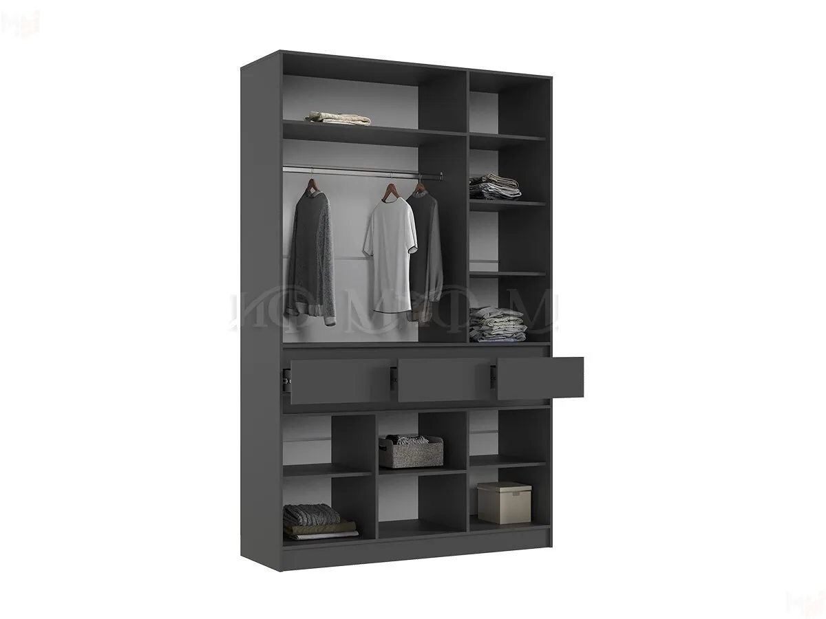 шкаф 3-х ств Роджина. (ширина 1500 мм, глубина 520 мм, высота 2400 мм) В шкафу предусмотрено три удобных выдвижных ящика на шариковых направляющих, а также полки небольшого размера и большая верхняя полка-антресоль.