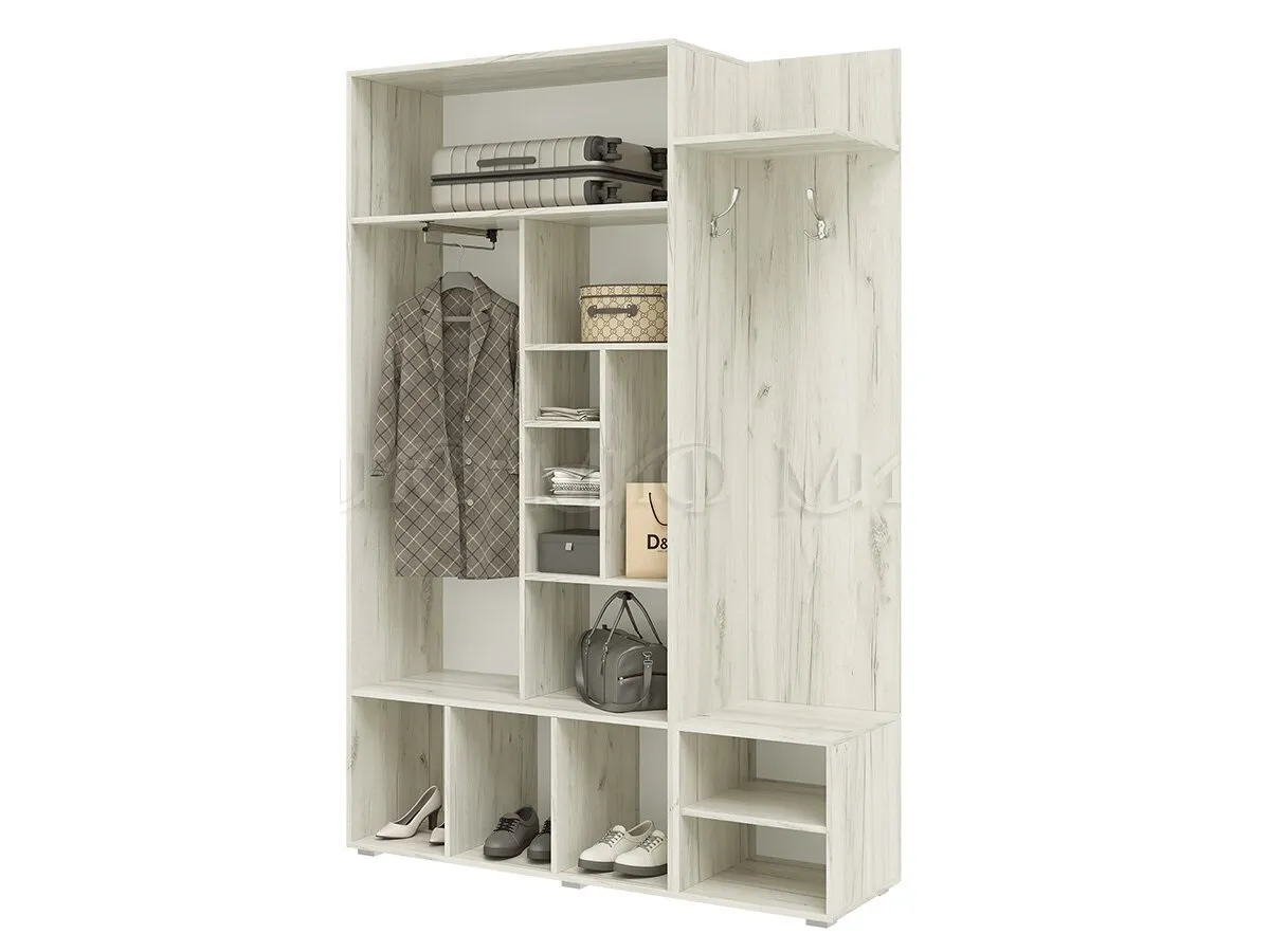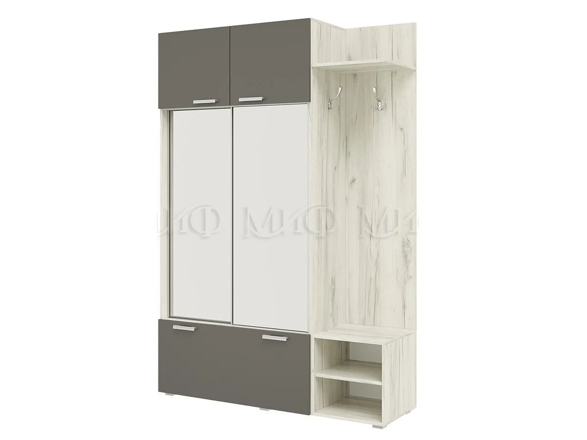 «Стелла» — удобная и вместительная прихожая в стиле лофт. Она имеет зеркальный шкаф-купе в алюминиевом профиле, обувницу, антресоль, вешалку для одежды. Материал: ЛДСП дуб крафт белый/графит.