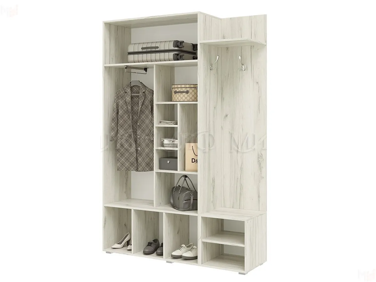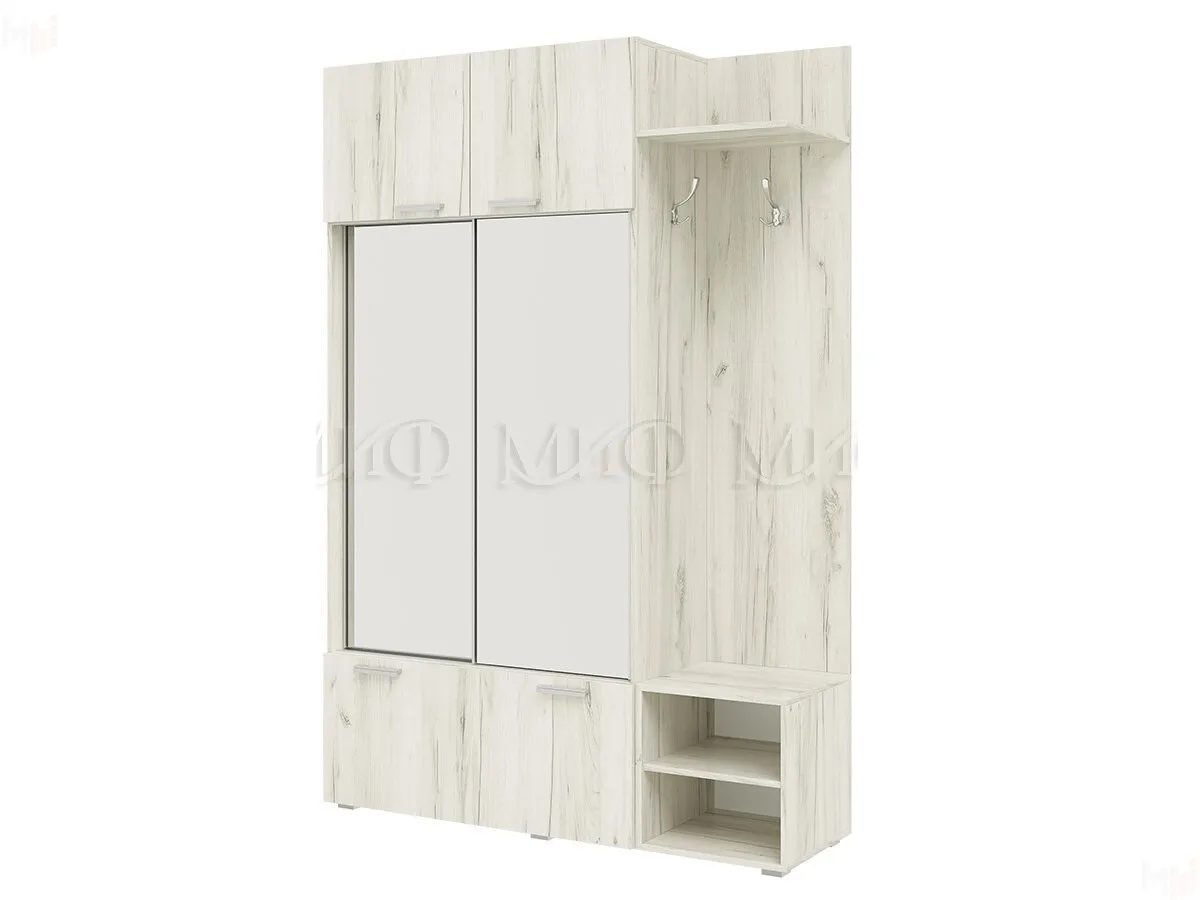 «Стелла» — удобная и вместительная прихожая в теплых светлых тонах. Она имеет зеркальный шкаф-купе в алюминиевом профиле, обувницу, антресоль, вешалку для одежды. Материал: ЛДСП дуб крафт белый.