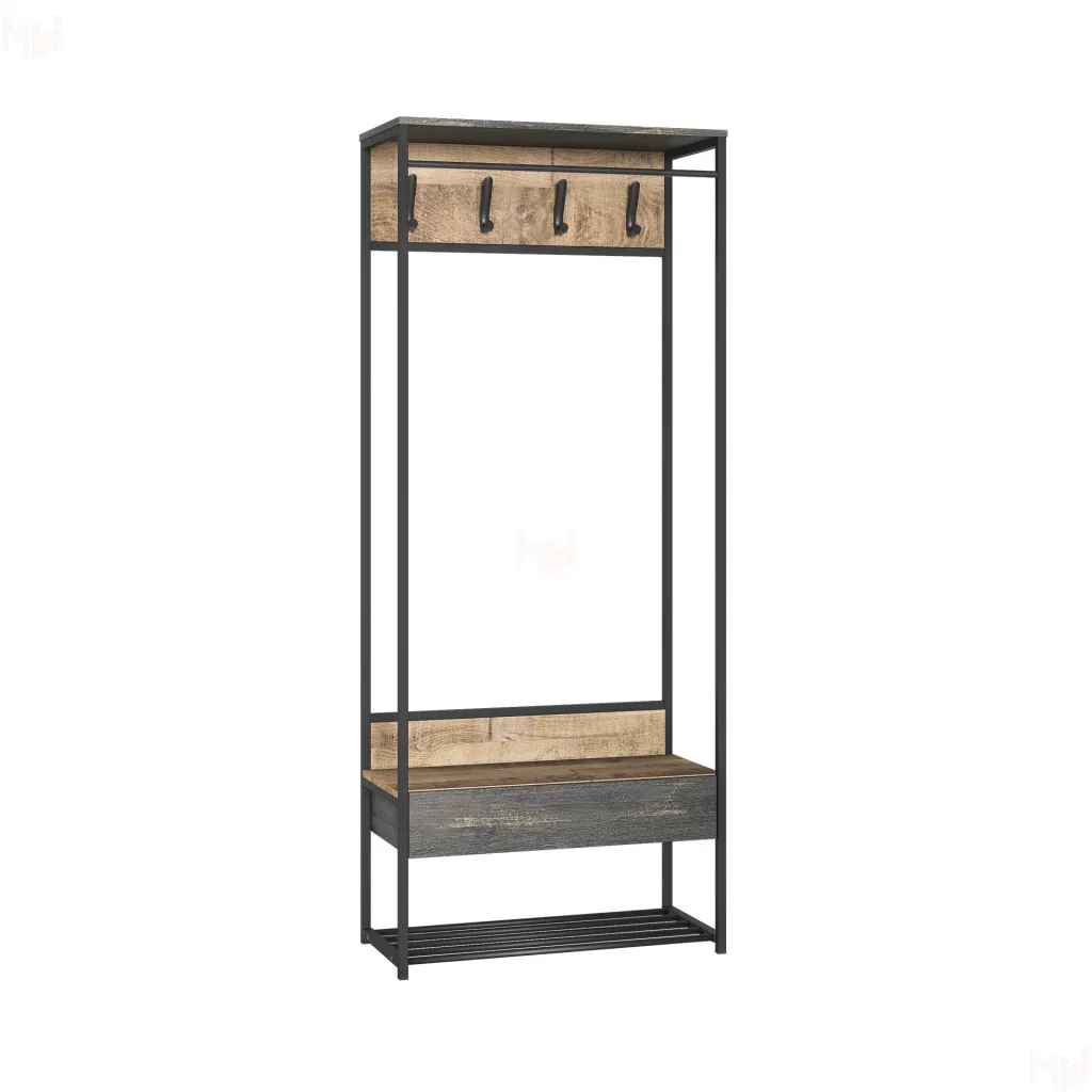 Прихожая Трувор 15.120 поможет создать приветливую и благоприятную атмосферу, которая с порога будет окутывать теплом. Четыре крючка и штанга для вешалок-плечиков созданы для верхней одежды. Для головных уборов предусмотрена небольшая антресоль, а нижняя трубчатая полка предназначена для размещения обуви. Небольшой выдвижной ящик пригодится для мелких аксессуаров и косметики по уходу за обувью.