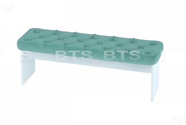 Каркас пуфа сделан из ЛДСП белого цвета. Обивка ткань - бирюзовый бархат.