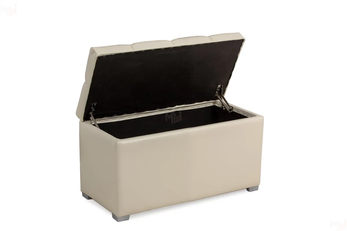 Пуф Мишель шириной 750 мм с каретной стяжкой. Сиденье пуфа открывается. Под сиденьем большая и удобная ниша для хранения.