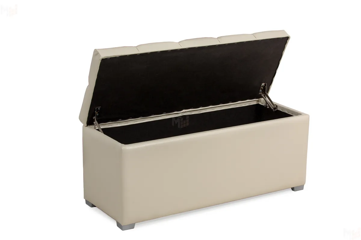 Пуф Мишель шириной 750 мм с каретной стяжкой. Сиденье пуфа открывается. Под сиденьем большая и удобная ниша для хранения.