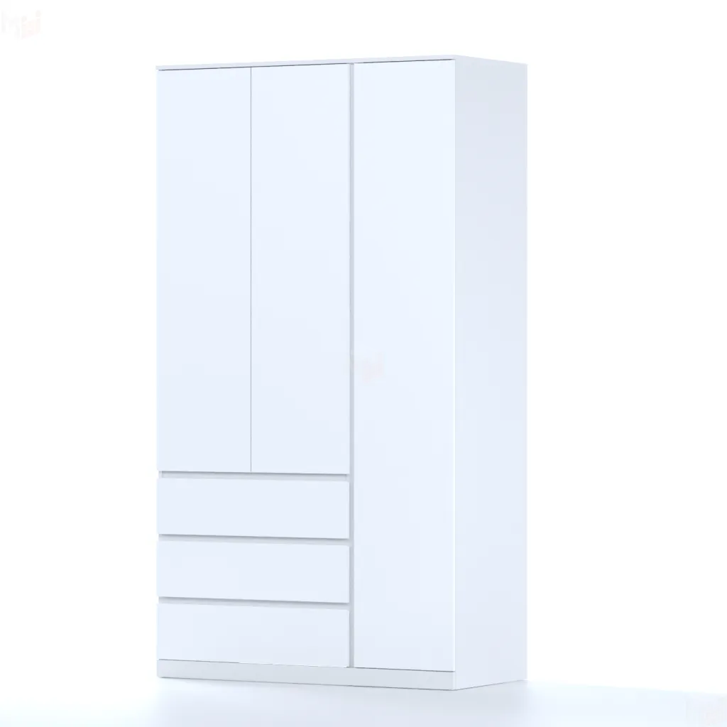 Шкаф Варма Стор 123: вместительный шкаф шириной 1230 мм из серии шкафов ВАРМА СТОР. Выполнен в классическом строгом белом дизайне с ручками скрытого типа. 3 распашных фасада и 3 выдвижных ящика, оснащен 2-мя гардеробными штангами.