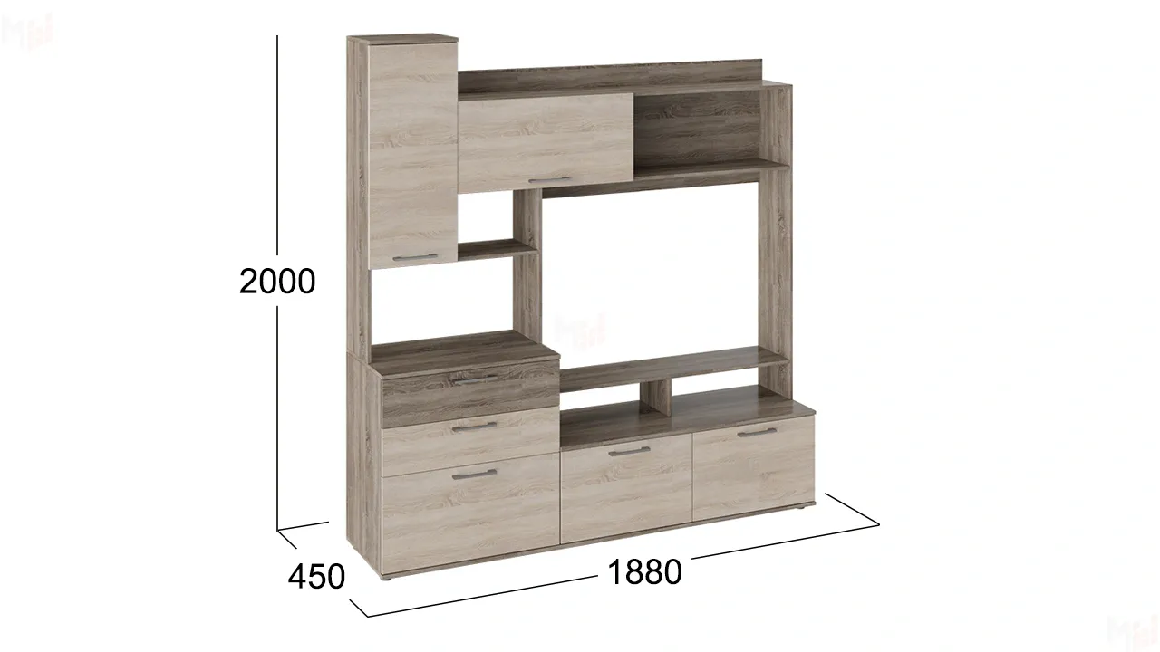 Ширина 1880 мм, Глубина 450 мм, Высота 2000 мм