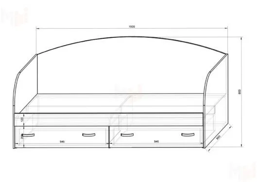 Кровать: 1935х850х850 мм. Спальное место - 1900х800 мм.
