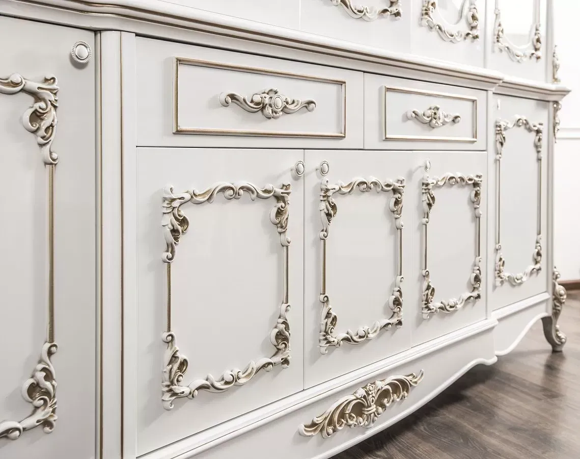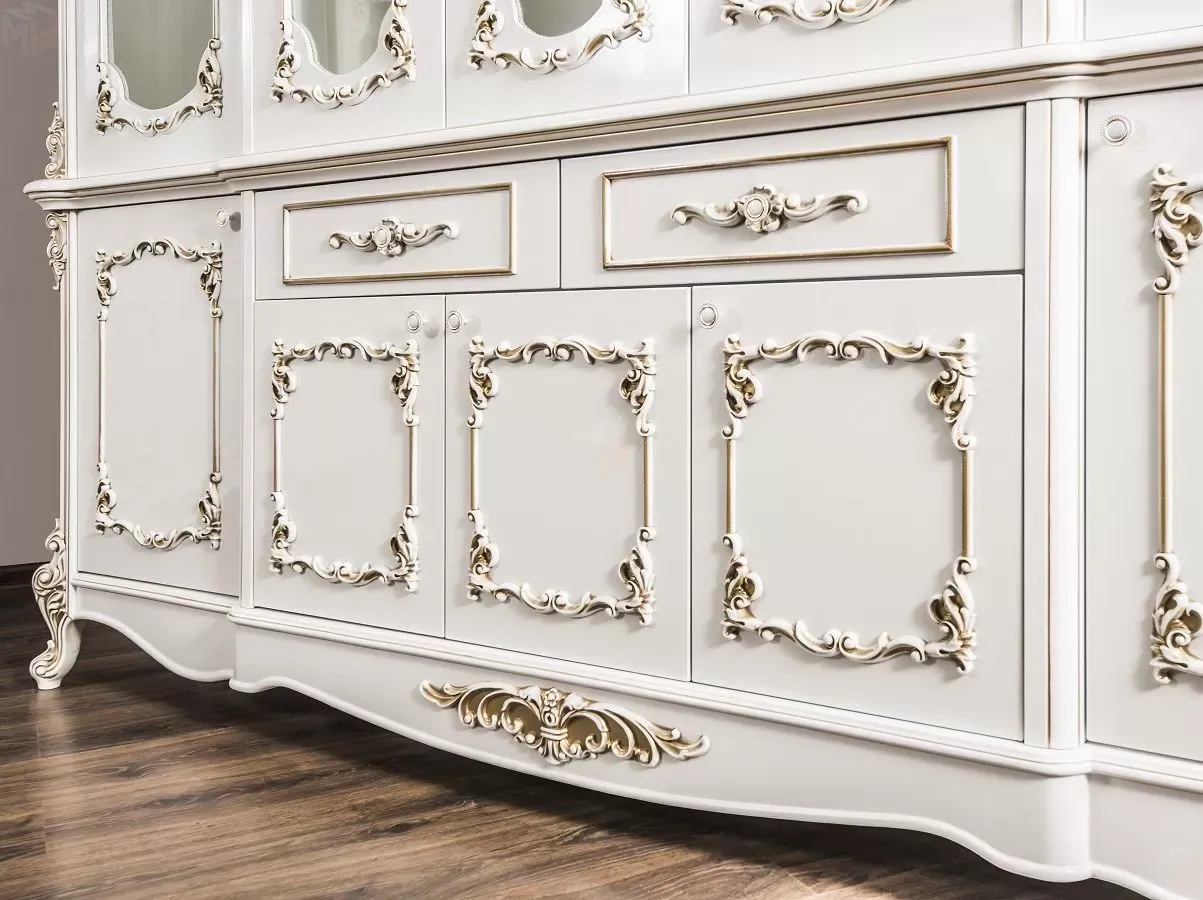 Декоративные элементы, фасады, накладки покрыты золотой патиной и матовым лаком