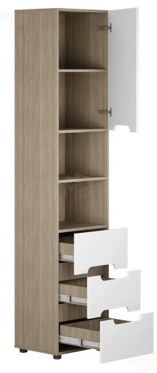 - Шкаф имеет вверху одну створку, внизу три выдвижных ящика.