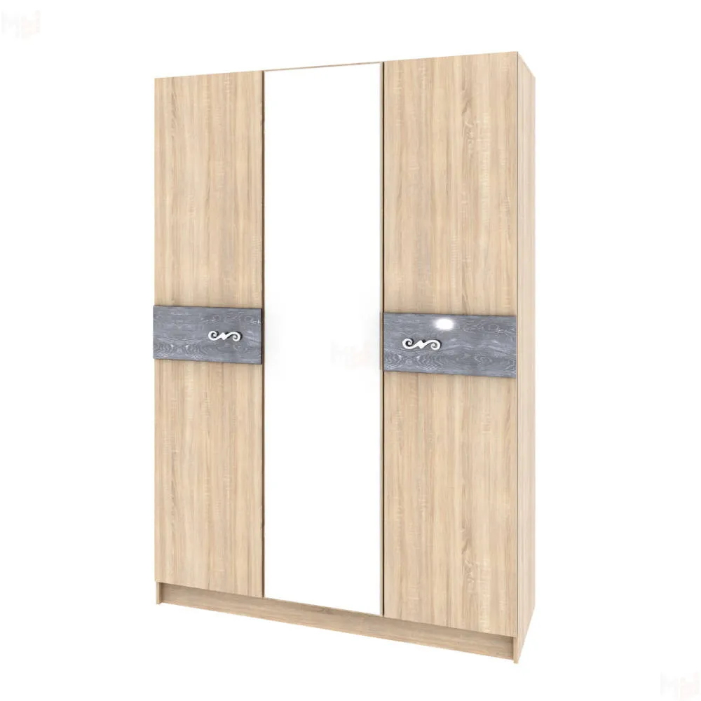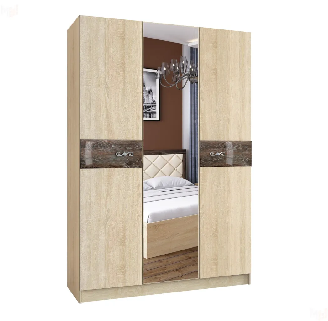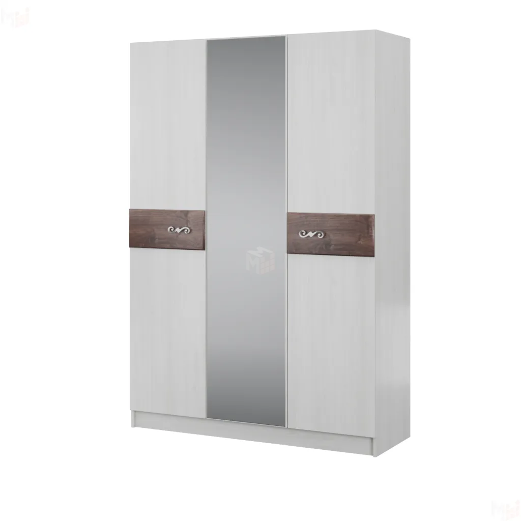 Шкаф 3-х дверный Мадлен безупречно впишется в интерьер уютной комнаты. За тремя распашными дверьми находится достаточно вместительное пространство, созданное для аккуратного и бережного хранения вашего гардероба. Широкая штанга предназначена для вешалок-плечиков с одеждой, а полки - для белья, аксессуаров и коробок с обувью. Зеркало пригодится во время подбора удачного образа, дополнив его безупречными аксессуарами. Элегантный спальный гарнитур Мадлен с накладками из плиты МДФ, облицованными высокоглянцевой пленкой ПВХ и изысканной фурнитурой покорит даже самых взыскательных покупателей. -