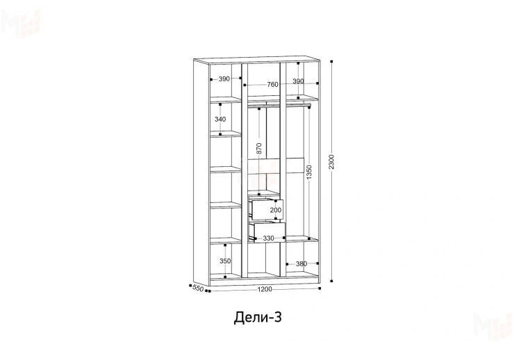 Ширина 1200 мм, Глубина 550 мм, Высота 2300 мм