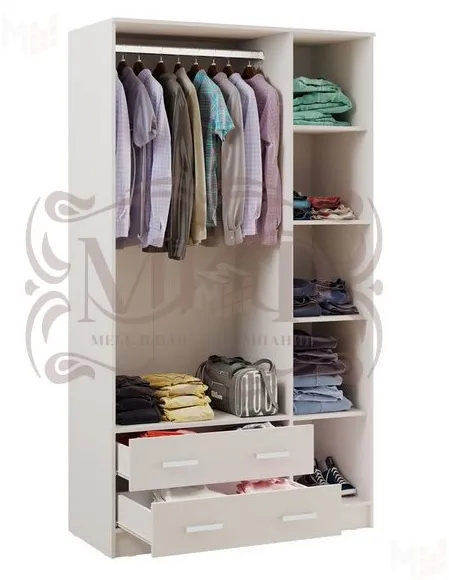 Небольшой, но вместительный шкаф с распашными дверями и двумя выдвижными ящиками для белья прослужит вашей семье долгие годы. Корпус шкафа выполнен из ЛДСП венге, фасады ЛДСП беленый дуб.
