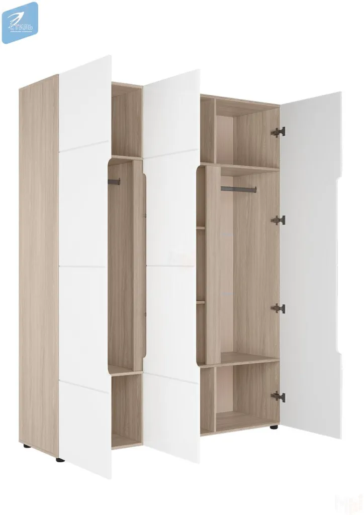 - Шкаф оснащен секциями с металлическими штангами и секцией с полками.