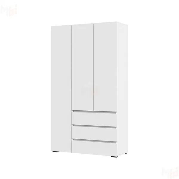 Шкаф оснащен тремя дверцами, за которыми располагается достаточно места для хранения одежды и различных предметов. Три вместительных выдвижных ящика.