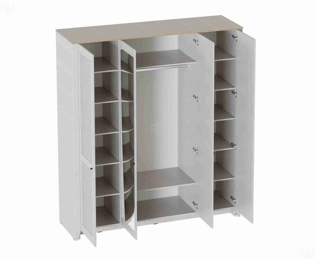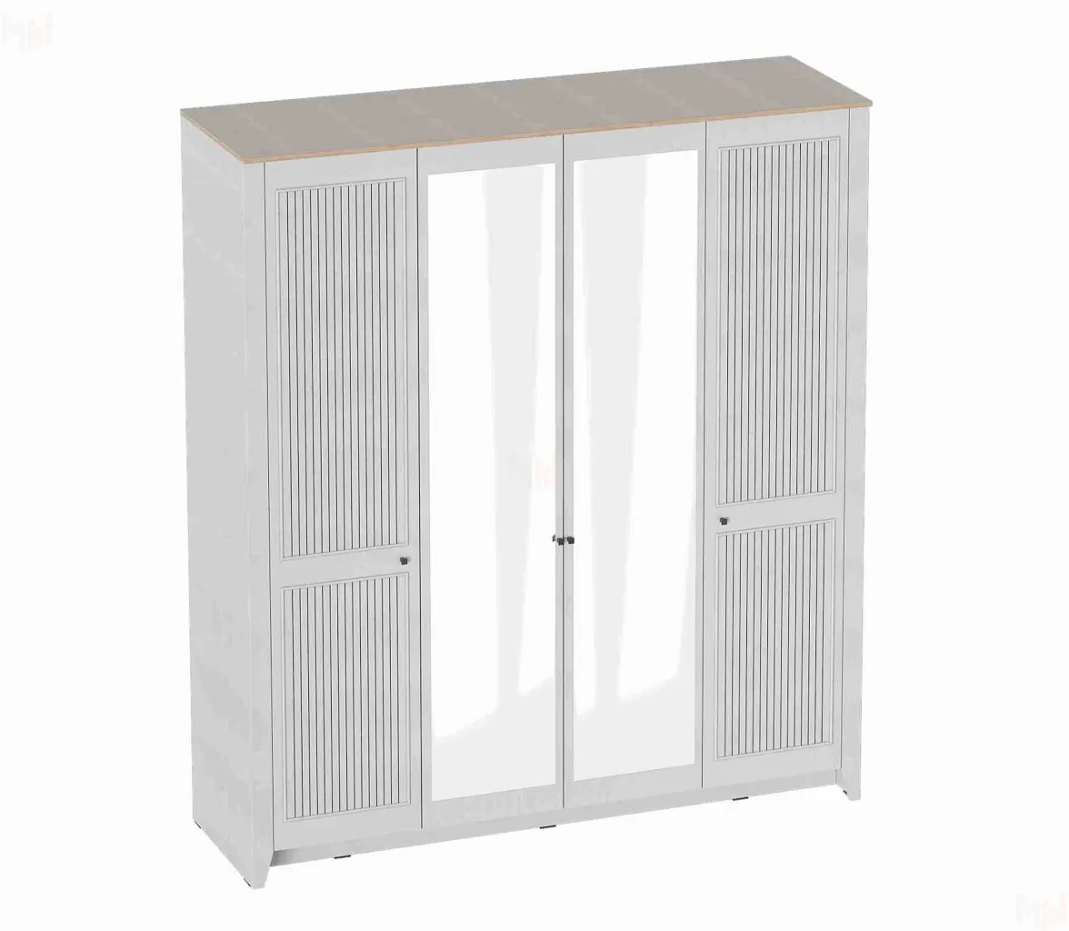 Шкаф 4 дверный Валенсия с зеркалом выполнен из (ЛДСП) в комбинации Дуб натуральный светлый / Персидский жемчуг.