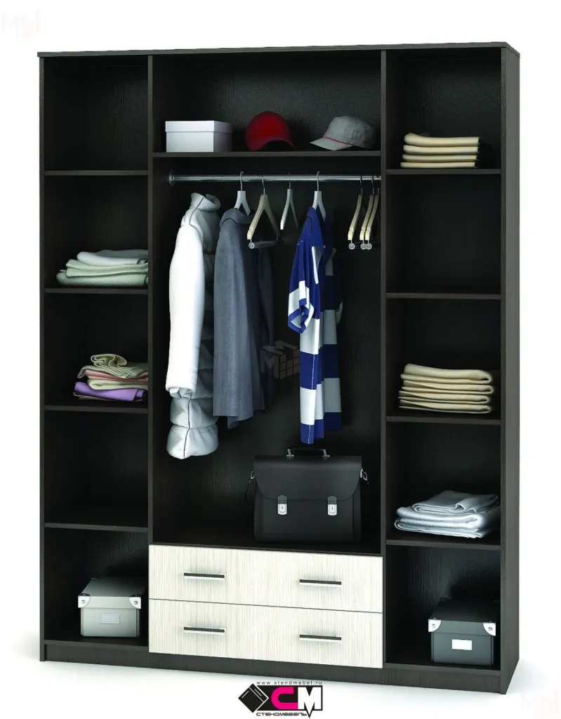 Шкаф 4-х створчатый с ящиками Квадро (венге/дуб)