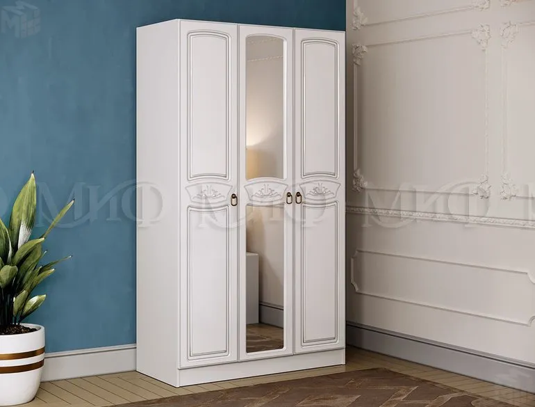 Каркас шкафа выполнен из ЛДСП белого цвета, фасады МДФ белый глянец.