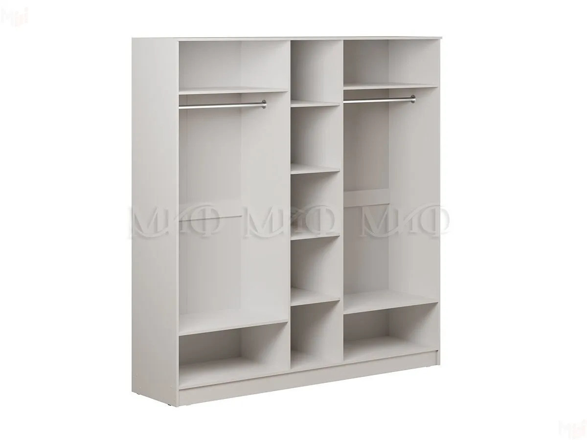Шкаф имеет классический дизайн. Корпус выполнен из ЛДСП белого цвета, фасады МДФ белый глянец.