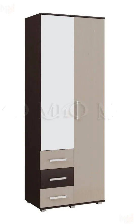 В шкафу есть полка, штанга для верхней одежды, 2 выдвижных ящика. Цвет венге/дуб белфорт или ясень шимо темный/ясень шимо светлый.