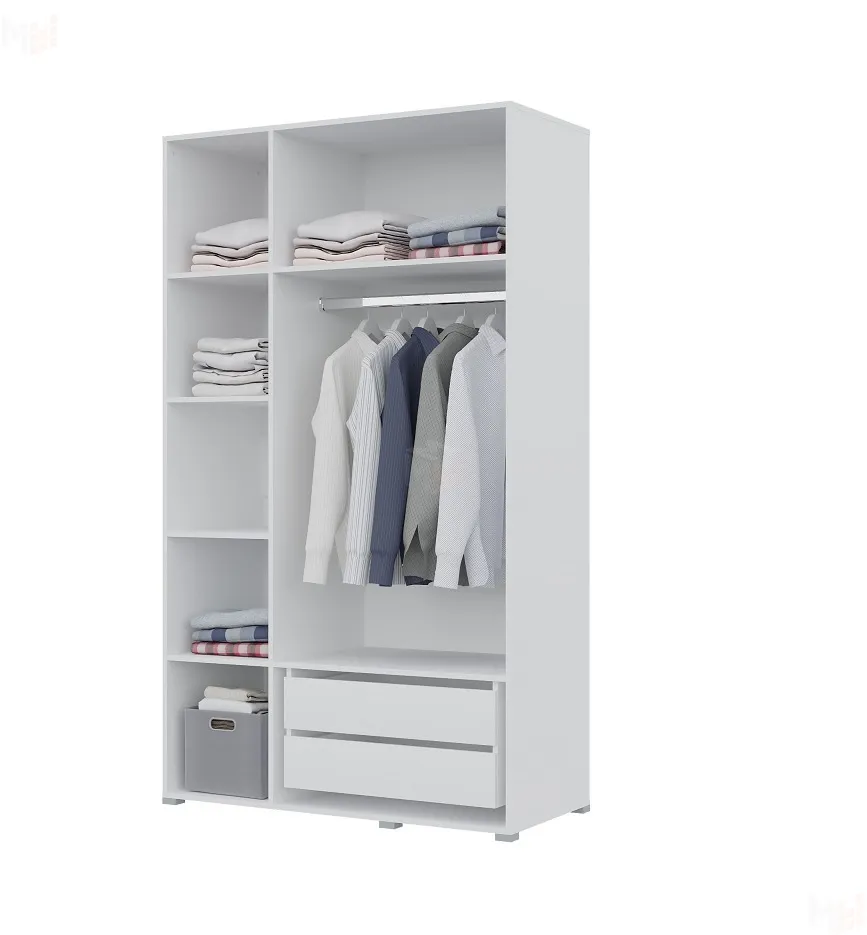 Наполнение №1 - полки большие и малые, штанга для вешалок, выдвижные ящики.