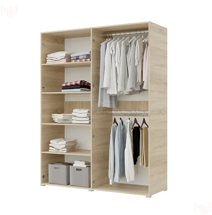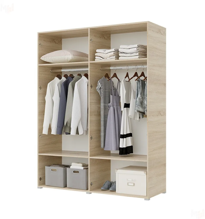 В шкафу есть отделения с полками для белья и штанга для верхней одежды.