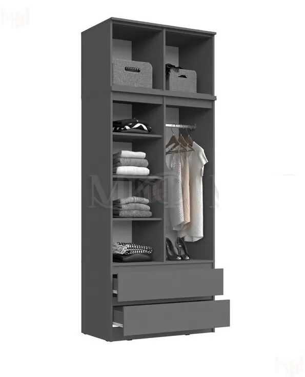 Корпус шкафа выполнен из ЛДСП цвета Графит 16 мм, фасады ЛДСП Графит.