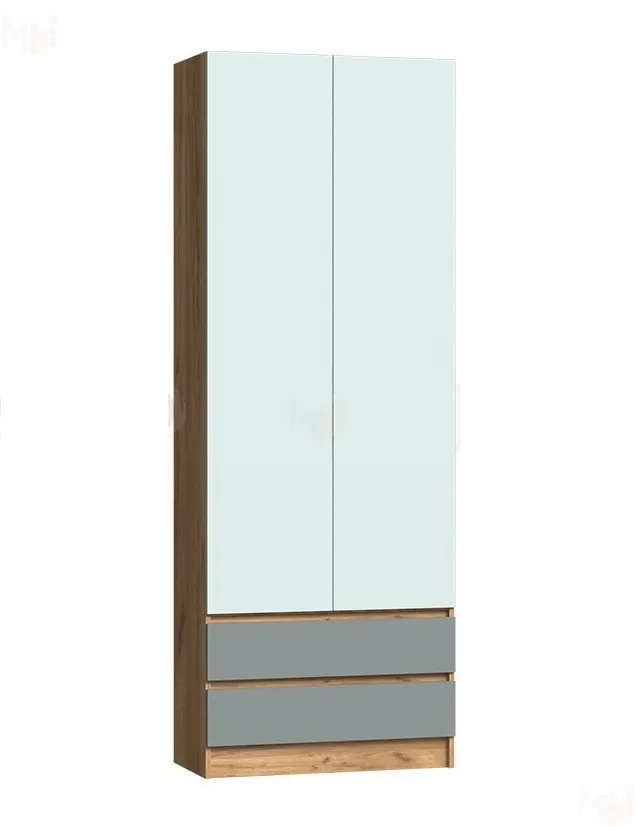 Наполнение шкафа - одна половина с полками для белья, вторая - с выдвижной штангой для одежды.