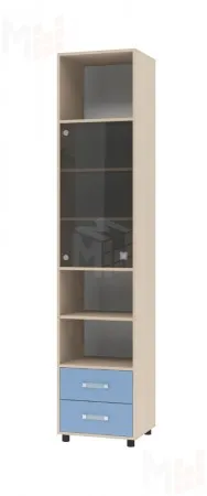 Шкаф станет прекрасным функциональным решением для хранения вещей в детской комнате. Этот предмет мебели включает в себя 6 вместительных полок, в том числе 3 закрытых за стеклянной дверью и 3 открытых полки, а также 2 выдвижных ящика. Таким образом, размещать в вещи в нем очень удобно. Современный и компактный шкаф отлично впишется в любой интерьер. Шкаф можно собрать с открыванием двери как на правую сторону, так и на левую. Шкаф установлен на регулируемых опорах.