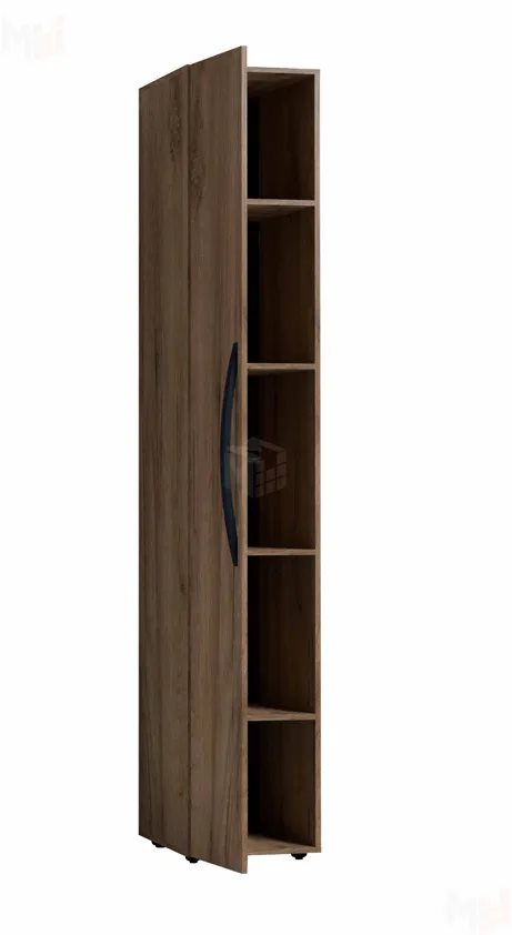 Высокий и глубокий шкаф-пенал для белья позволит максимально полезно использовать квадратные метры маленькой спальни. На 4 полках, регулируемых по высоте, можно легко разместить постельное белье, теплые одеяла и подушки. Гладкие фасады и натуральный декор шкафа привнесут в комнату особый уют и теплоту.