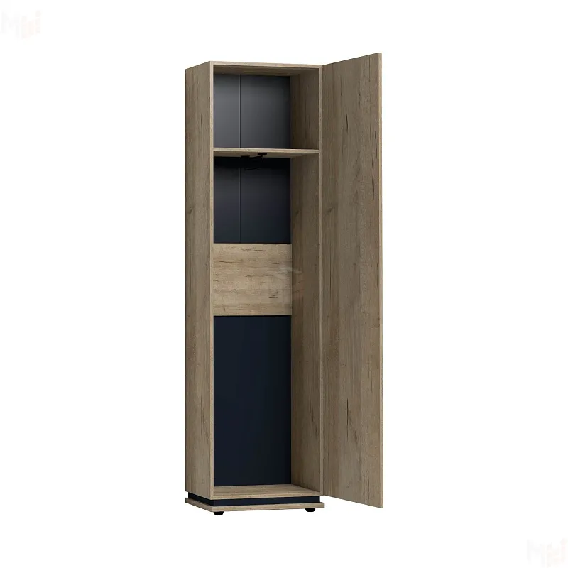 Распашной шкаф для одежды и белья комплектуется выдвижной штангой для одежды. При желании можно докупить и установить модуль OSLO 19 Полки (в комплекте 3 полки) в заранее просверленные варианты присадки. Фасад шкафа перенавешивается на ваше усмотрение.