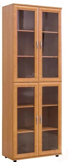 Книга в цивилизованном обществе всегда имела большую ценность. Книги оберегали от пыли, сырости, грязи и хранили в сундуках, передавая из поколения в поколение. Задача сохранения книг решилась, с появлением книжных шкафов, которые и в наше время пользуются спросом. Удобная модель шкафа для книг № 107 разделена на две половинки, закрывающиеся застеклёнными дверками. Стекло позволяет выбрать нужную книгу по надписи на корешке, не открывая дверцу. Полки не глубокие (390мм.), но на них достаточно места для расстановки томов. Шкаф в ширину составляет всего 800мм, что позволяет установить его даже в маленькой комнате. Изготовлена модель из ЛДСП европейского качества и декорирована накладками из МДФ. Для большего удобства, каждая дверка снабжена ручкой современного дизайна. Выверенная конструкция и толщина полки позволяют не беспокоиться об её обрушении. Закалённое стекло, вставленное в дверки, безопасно, так как не даёт острых осколков при разбивании. Опорой шкафу служат пластиковые ножки.