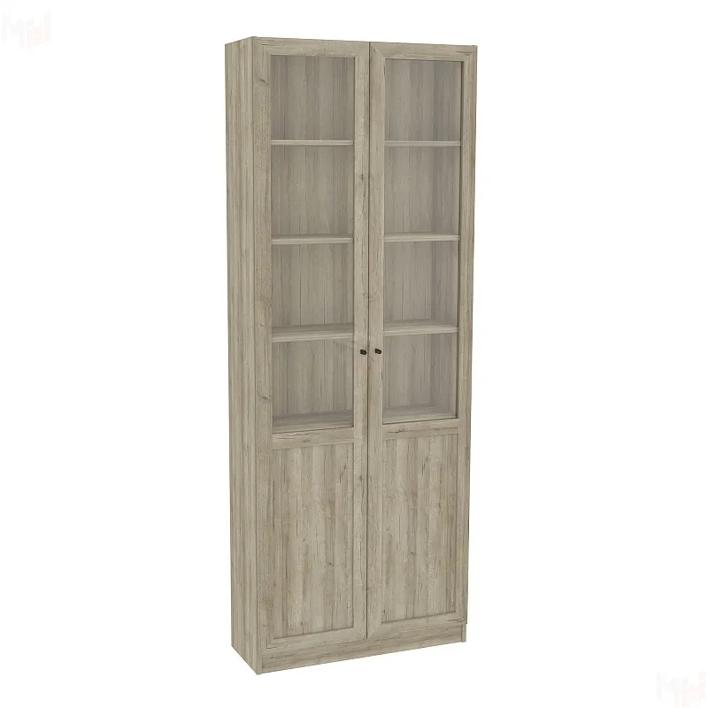 Книжный шкаф высотой 2107 мм поможет правильно организовать хранение книг и документов. За стеклянными фасадами из закаленного прозрачного стекла регулируемые по высоте полки из ЛДСП, что позволит разместить литературу различного формата.