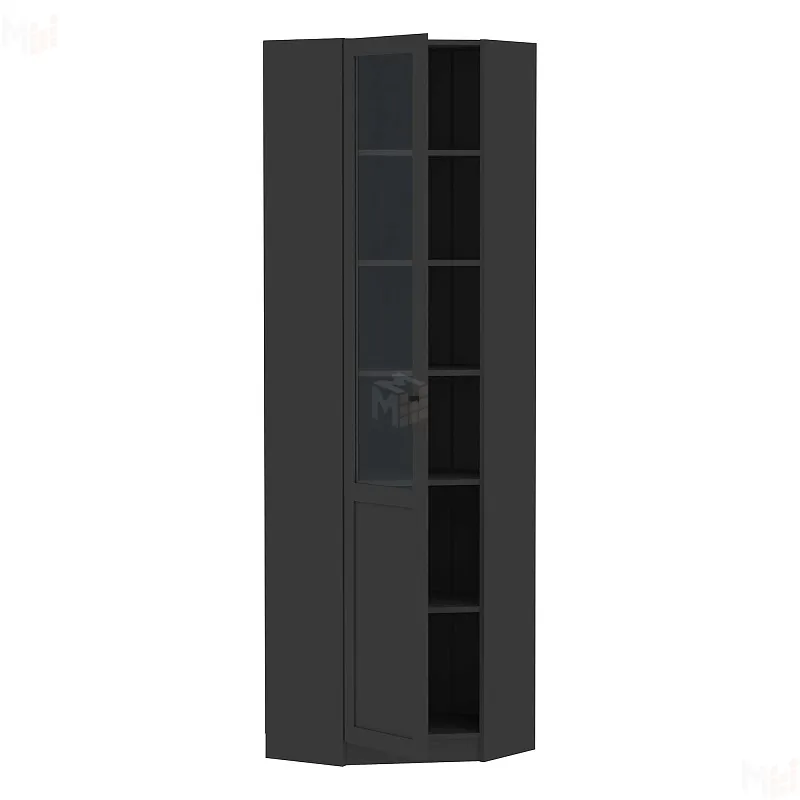 За стеклянным фасадом из закаленного прозрачного стекла регулируемые по высоте полки из ЛДСП, что позволит разместить литературу различного формата. Книжный шкаф обязательно крепить к стене!