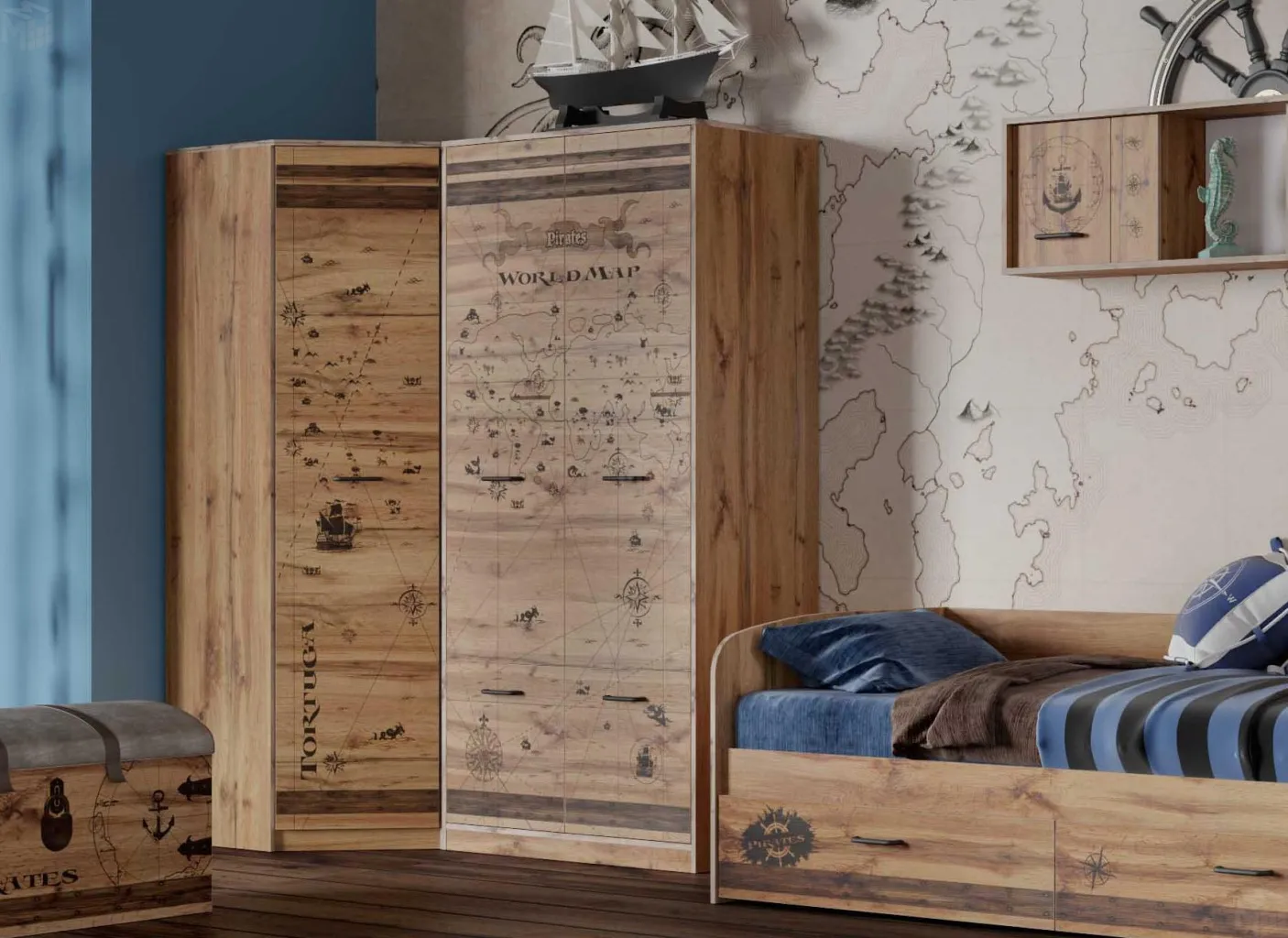 При оформлении детской на первый план выходит рациональное использование полезного пространства, ведь здесь ребенок не только отдыхает, но и играет, делает уроки, занимается творчеством и спортом. Наши дизайнеры при создании коллекций продумывают каждую деталь, опираясь на актуальные тенденции. Шкаф для одежды «Фрегат» — один из примеров идеального сочетания практичности, оригинальности и долговечности. Цветовое исполнение подходит сразу для нескольких стилей, а габариты — для комнат разной площади. Мебель для детской создается из безопасных материалов с отличной износостойкостью.