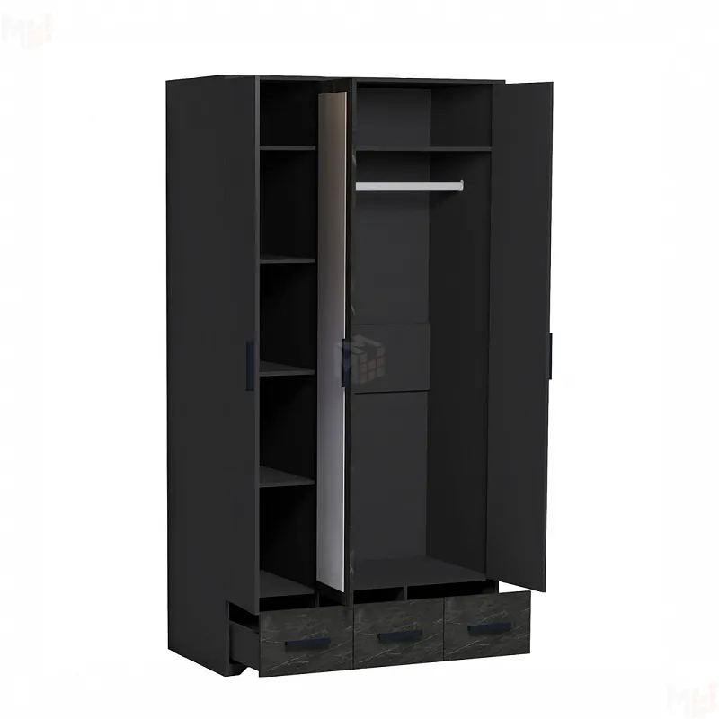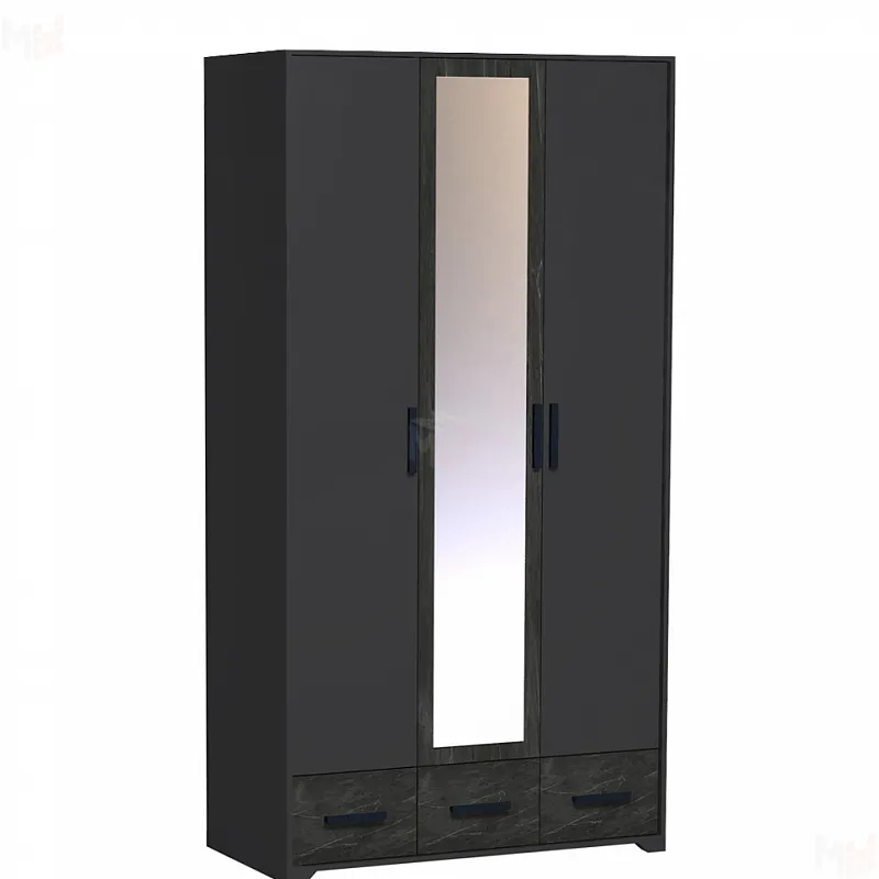 Шкаф оснащен отделением для хранения белья с полками на скрытых полкодержателях и отделением для одежды со стационарной штангой 758 мм. 3 выдвижных ящика комплектуются шариковыми направляющими, что обеспечивает минимальный люфт ящиков и максимальное использование их площади. Петли с доводчиками для бесшумного закрывания дверок шкафа. Зеркало на фасаде шкафа. -