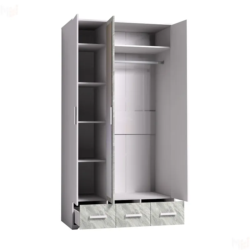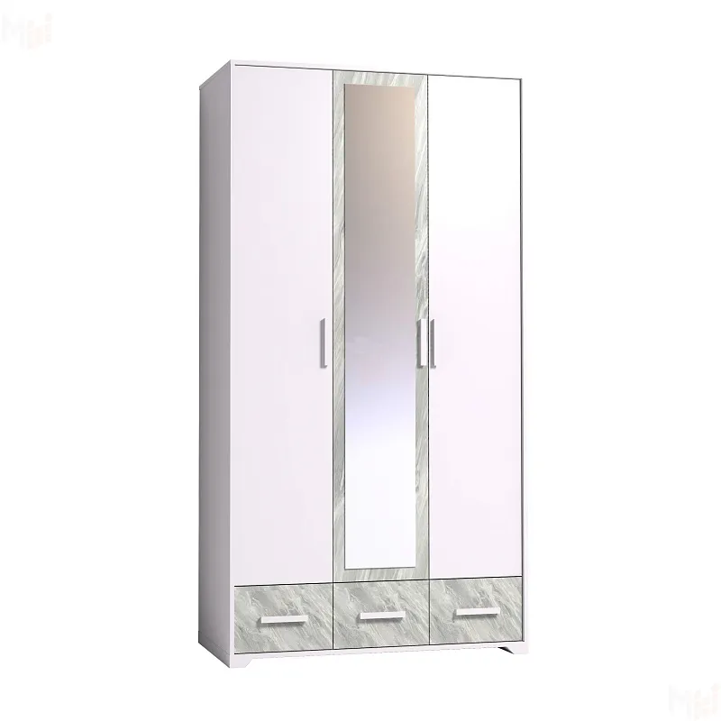 Трехстворчатый шкаф для одежды и белья Айрис 444 с зеркалом и выдвижными ящиками — находка для большой и маленькой спальни. Функциональное наполнение шкафа разделено, что очень удобно для зонирования гардероба всех членов семьи.
