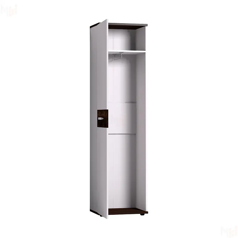 Распашной шкаф для одежды и белья комплектуется выдвижной штангой для одежды. При желании можно докупить и установить модульНорвуд 72 Полки (в комплекте 3 полки) в заранее просверленные варианты присадки. Верхняя и нижняя детали шкафа толщиной 22 мм и ддекоративная вставка по центру в декоре Орех Шоколадный - яркие акценты простого белого модуля. Ударопрочная кромка на фасаде толщиной 2 мм продлит срок эксплуатации мебели. Фасад шкафа перенавешивается на ваше усмотрение на правую или на левую сторону.