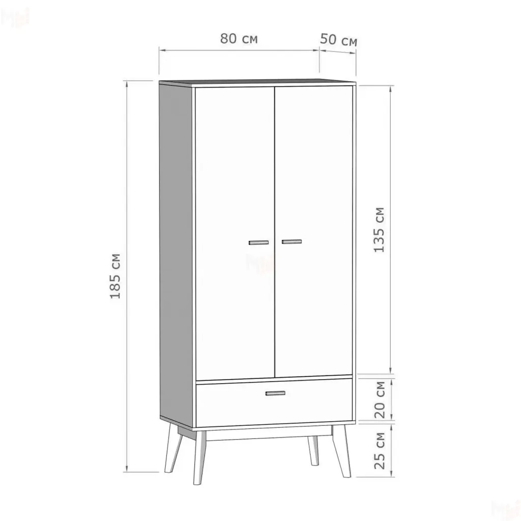 Ширина 800 мм Глубина 500 мм Высота 1850 мм